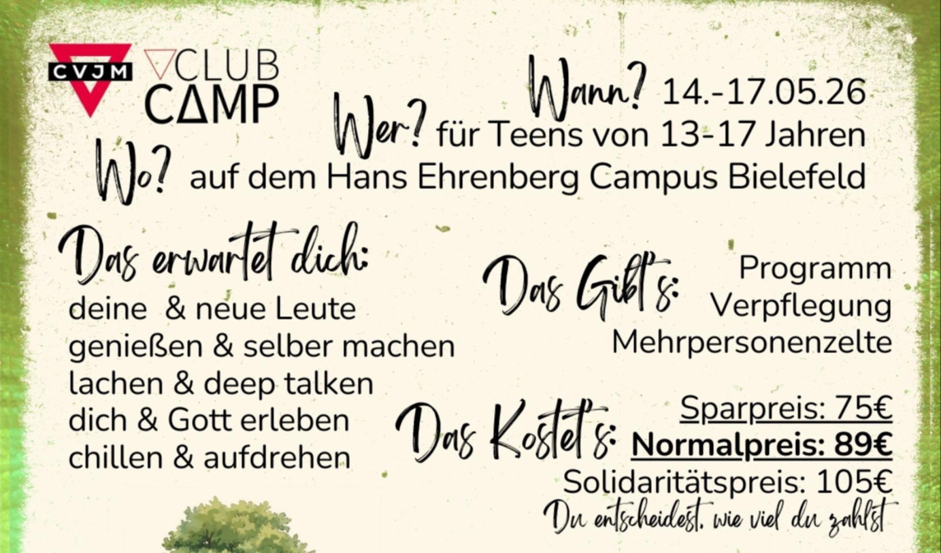 Wir laden alle CVJM ein, mit Jugendlichen zum CVJM-CLUB-CAMP zu